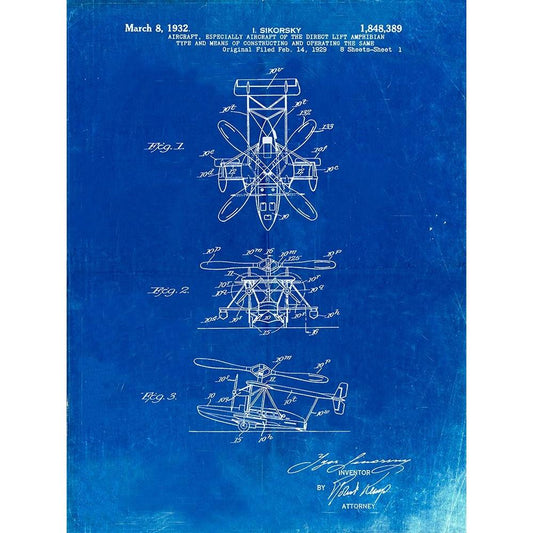 PP170- Faded Blueprint Sikorsky S-41 Amphibian Aircraft Patent Poster Black Modern Wood Framed Art Print by Borders, Cole