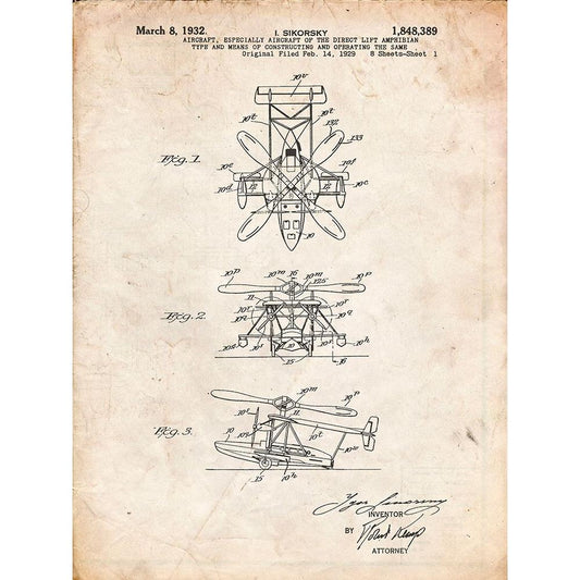 PP170- Vintage Parchment Sikorsky S-41 Amphibian Aircraft Patent Poster Black Modern Wood Framed Art Print by Borders, Cole