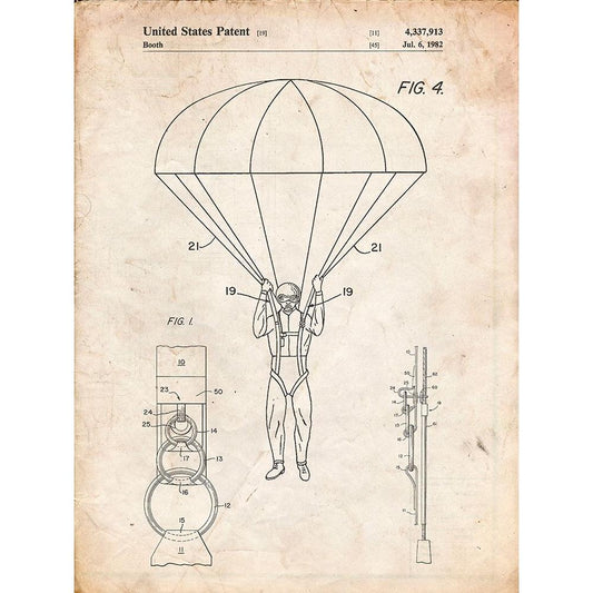 PP187- Vintage Parchment Parachute 1982 Patent Poster Black Modern Wood Framed Art Print by Borders, Cole