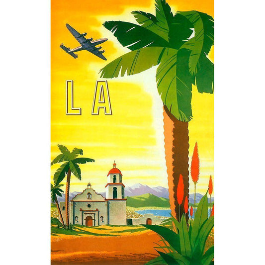 La Palm Tree Black Modern Wood Framed Art Print by Vintage Apple Collection