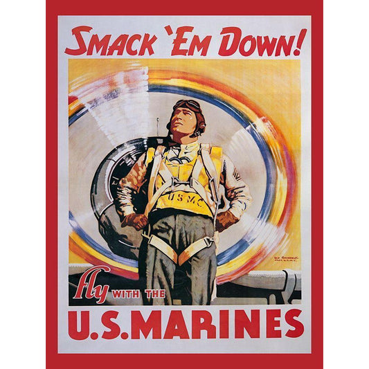 Mural Smackdown Marines Black Modern Wood Framed Art Print by Vintage Apple Collection