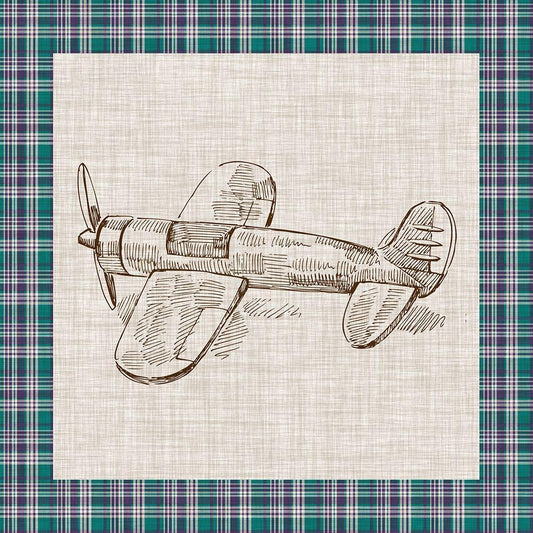 Airplane Mechanical Sketch II White Modern Wood Framed Art Print with Double Matting by Harper, Ethan