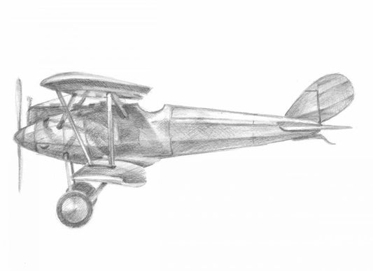 Airplane Mechanical Sketch I White Modern Wood Framed Art Print with Double Matting by Harper, Ethan