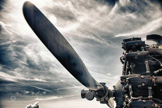 Aero Maquina Big Yellow BW White Modern Wood Framed Art Print with Double Matting by Larson, Nathan