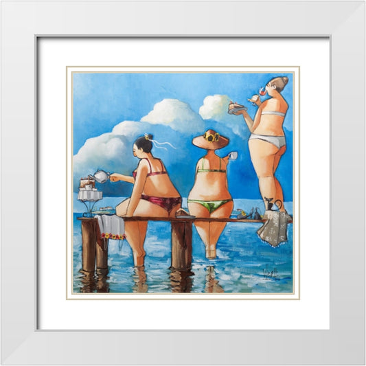 Tea Break On The Jetty White Modern Wood Framed Art Print with Double Matting by West, Ronald