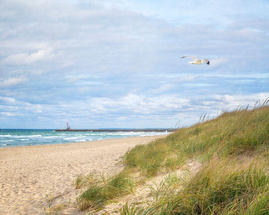 Beach And Jetty White Modern Wood Framed Art Print with Double Matting by Ryan, Brooke T.