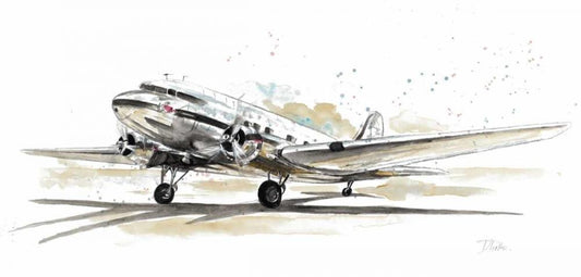 DC3 Airplane White Modern Wood Framed Art Print with Double Matting by Pinto, Patricia