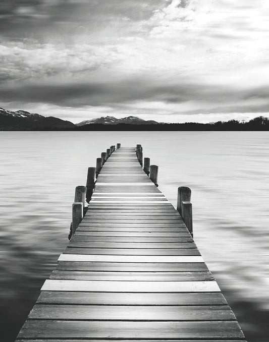 Brandlehow Bay Jetty-Derwenter White Modern Wood Framed Art Print with Double Matting by Delimont, Danita