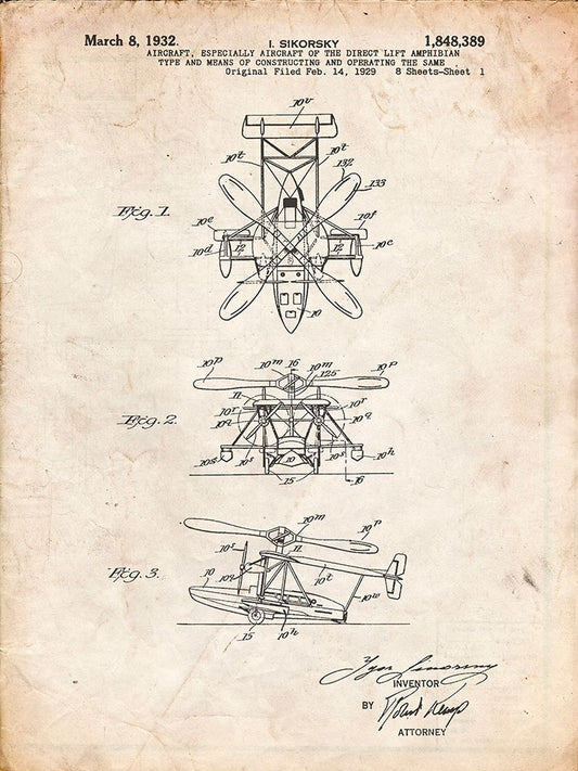 PP170- Vintage Parchment Sikorsky S-41 Amphibian Aircraft Patent Poster White Modern Wood Framed Art Print with Double Matting by Borders, Cole