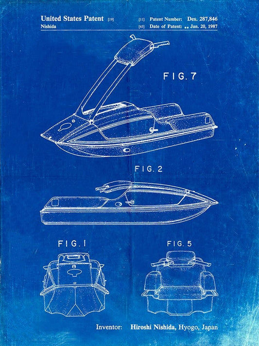 PP1076-Faded Blueprint Suzuki Jet Ski Patent Poster White Modern Wood Framed Art Print with Double Matting by Borders, Cole