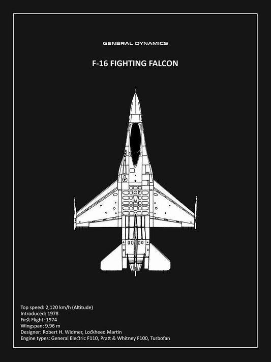 BP F-16 Fighting Falcon Black White Modern Wood Framed Art Print with Double Matting by Rogan, Mark