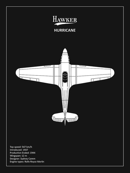 BP Hawker Hurricane Black White Modern Wood Framed Art Print with Double Matting by Rogan, Mark