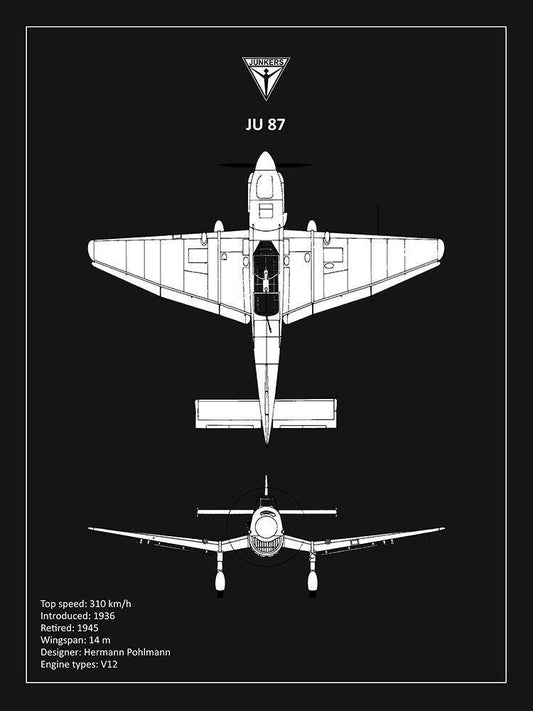 BP Junkers JU87 Black White Modern Wood Framed Art Print with Double Matting by Rogan, Mark