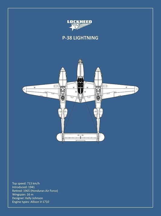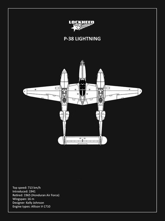 BP Lockheed P38 Lightning Black White Modern Wood Framed Art Print with Double Matting by Rogan, Mark