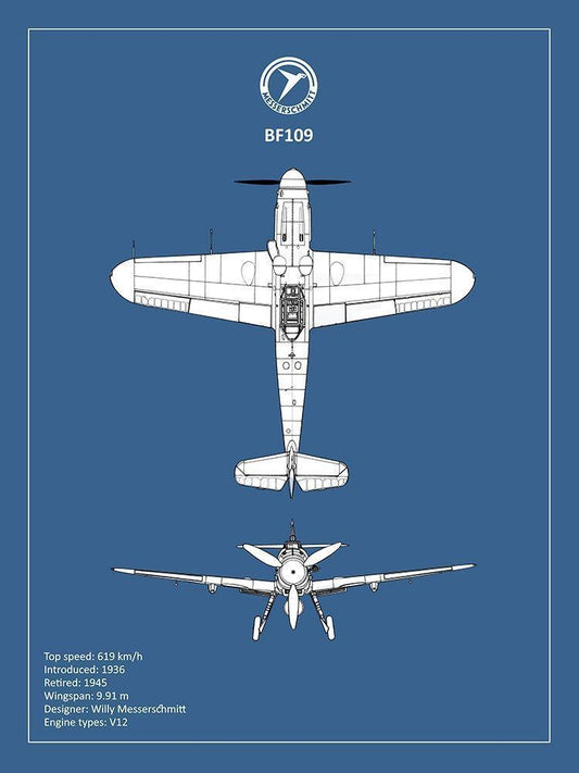 BP Messerschmitt ME 109 White Modern Wood Framed Art Print with Double Matting by Rogan, Mark