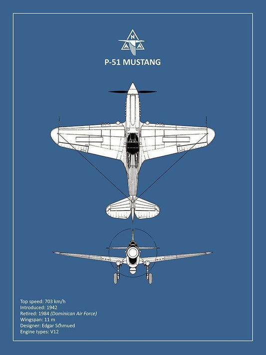 BP P-51 Mustang Black White Modern Wood Framed Art Print with Double Matting by Rogan, Mark