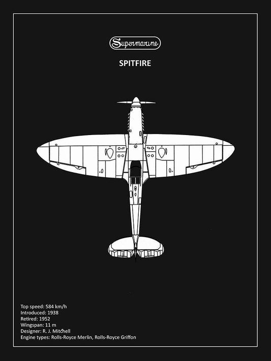 BP Supermarine Spitfire Black White Modern Wood Framed Art Print with Double Matting by Rogan, Mark