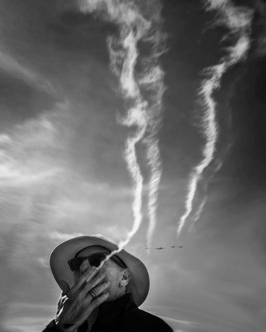 Smoking Black Ornate Wood Framed Art Print with Double Matting by Guo, Leah