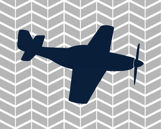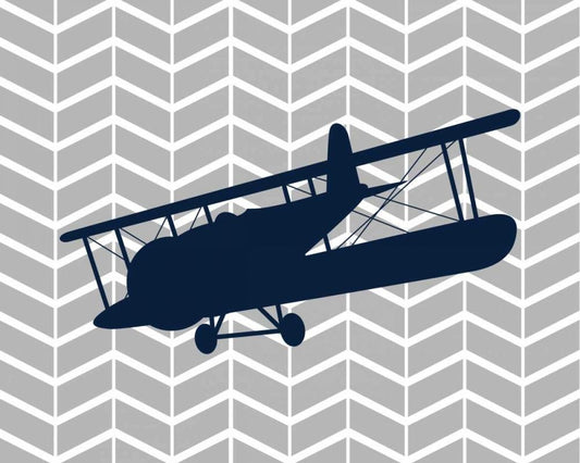 Airplane on Navy Black Ornate Wood Framed Art Print with Double Matting by Robinson, Tamara
