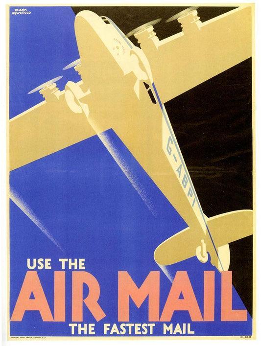Airmail Saves Time Black Ornate Wood Framed Art Print with Double Matting by Vintage Apple Collection