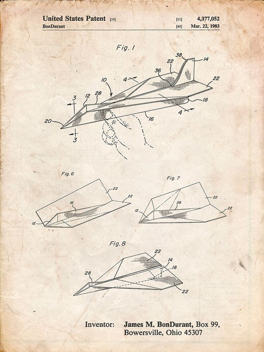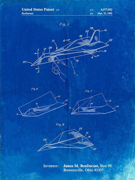 PP983-Faded Blueprint Paper Airplane Patent Poster Black Ornate Wood Framed Art Print with Double Matting by Borders, Cole
