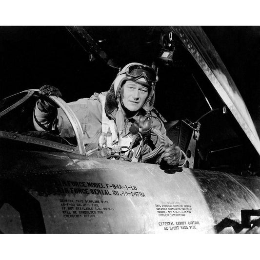 Jet Pilot - John Wayne Black Modern Wood Framed Art Print with Double Matting by Hollywood Photo Archive