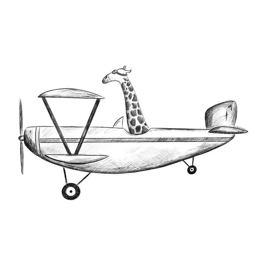 Giraffe in a Plane Black Modern Wood Framed Art Print with Double Matting by Nieman, Rachel
