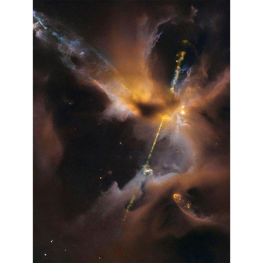 A Newborn Star Shoots Twin Jets Out Into Space Black Modern Wood Framed Art Print with Double Matting by NASA