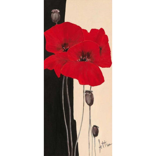 Three red popppies I Black Modern Wood Framed Art Print with Double Matting by Roseboom, Jettie