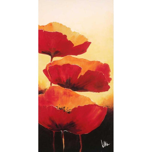 Three red popppies II Black Modern Wood Framed Art Print with Double Matting by Roseboom, Jettie
