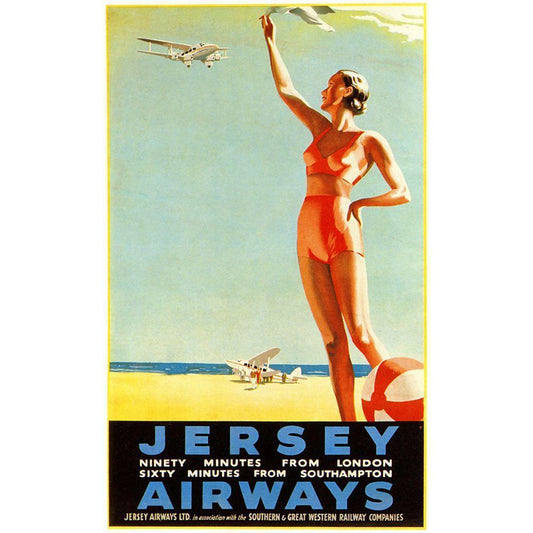 Jersey Airways Great Britain Black Modern Wood Framed Art Print with Double Matting by Vintage Apple Collection