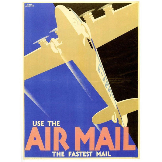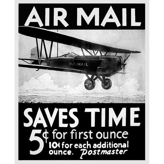 Airmail Saves Time Black Modern Wood Framed Art Print with Double Matting by Vintage Apple Collection