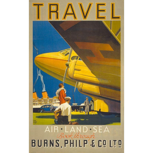 Art_Deco_Airplane_Travel Black Modern Wood Framed Art Print with Double Matting by Vintage Apple Collection