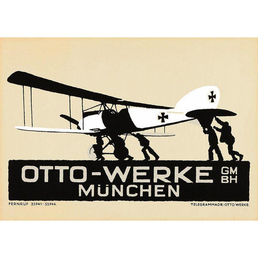 Airplane Art Deco Munich Black Modern Wood Framed Art Print with Double Matting by Vintage Apple Collection