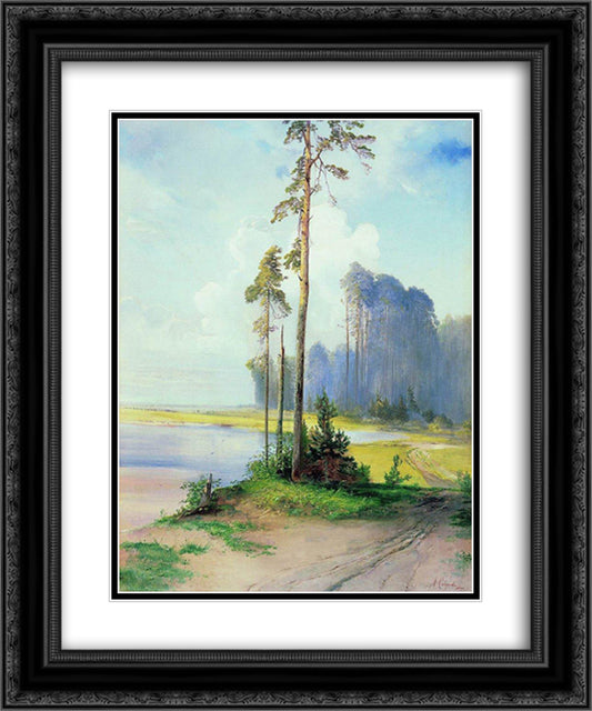 Summer landscape. Pines 20x24 Black Ornate Wood Framed Art Print Poster with Double Matting by Savrasov, Aleksey