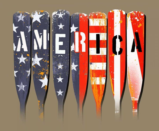 America - Oars White Modern Wood Framed Art Print with Double Matting by Baldwin, Jim