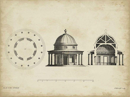 Building Section and Plan II White Modern Wood Framed Art Print with Double Matting by Gibbs, James