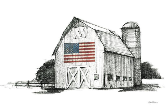 Patriotic Barn White Modern Wood Framed Art Print with Double Matting by Tillmon, Avery