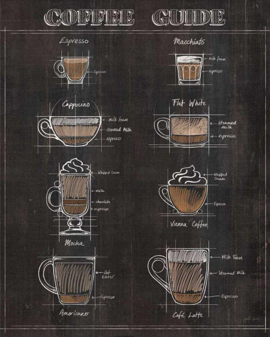 Coffee Guide II White Modern Wood Framed Art Print with Double Matting by Penner, Janelle