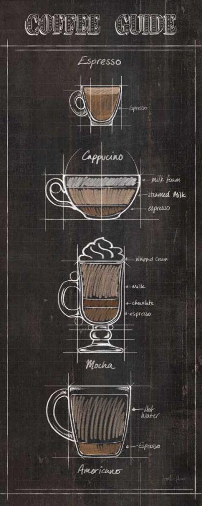 Coffee Guide Panel I White Modern Wood Framed Art Print with Double Matting by Penner, Janelle