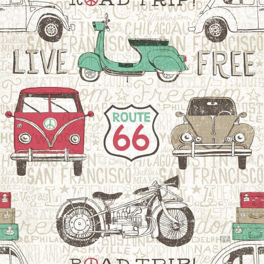 American Road Trip Pattern I White Modern Wood Framed Art Print with Double Matting by Towne, Oliver
