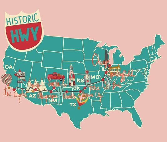 Roadtrip Map White Modern Wood Framed Art Print with Double Matting by Bucheli, Jen