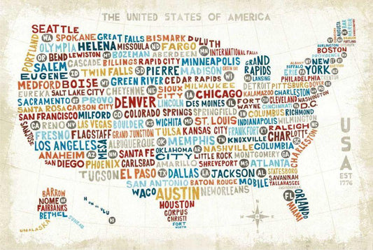 US City Map White Modern Wood Framed Art Print with Double Matting by Mullan, Michael