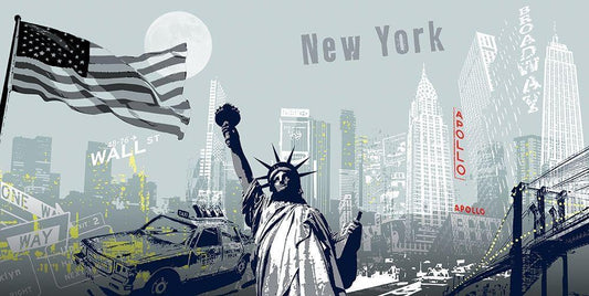 New York I White Modern Wood Framed Art Print with Double Matting by Tandem