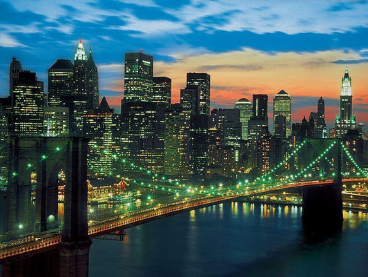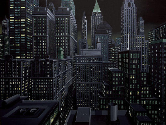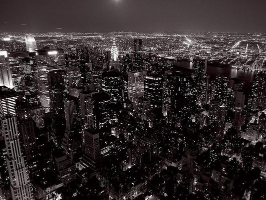 South Manhattan night White Modern Wood Framed Art Print with Double Matting by Peyret, Eric