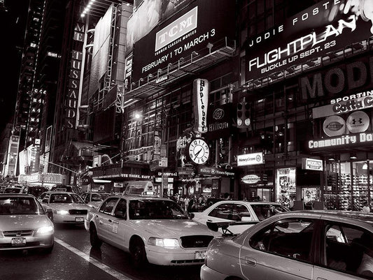 42nd Street at night White Modern Wood Framed Art Print with Double Matting by Setboun, Michel