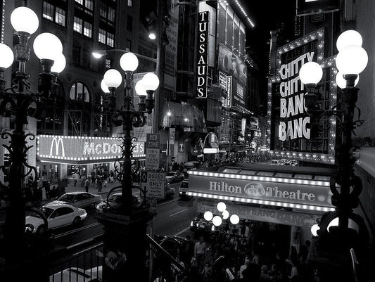 42nd Street Theater District White Modern Wood Framed Art Print with Double Matting by Setboun, Michel