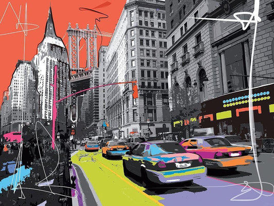 NY trace White Modern Wood Framed Art Print with Double Matting by Braun Studio