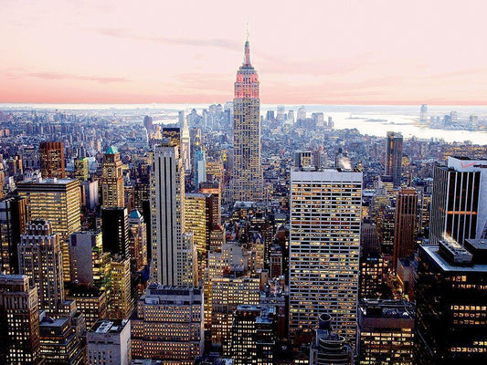 New York Empire State White Modern Wood Framed Art Print with Double Matting by Tandem