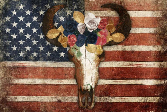 American Floral Bull White Modern Wood Framed Art Print with Double Matting by Grey, Jace